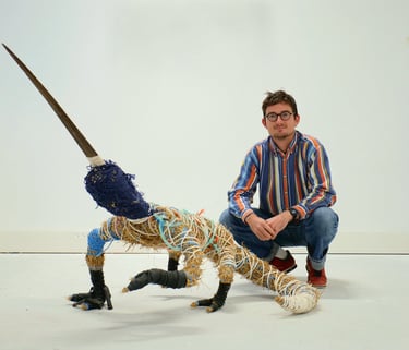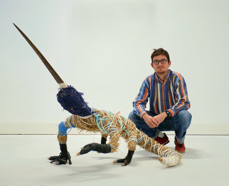 Jules Le Maut est né en 1994 à Lannion. Il vit et travaille à Brest. Après une formation de menuisier, il travaille en tant qu’accessoiriste pour le cinéma et l’audiovisuel, profitant de son temps libre pour voyager et « bricoler ». En 2016, il sillonne l’Atlantique à bord d’un voilier. A 25 ans, Jules est admis à la Haute Ecole des Arts du Rhin (HEAR) de Strasbourg où il se forme à la sculpture. C’est dans les ateliers de cette école qu’il découvre le travail du métal et de la céramique, techniques qu’il intègre à son savoir-faire de sculpteur. Pour son premier projet artistique, il passe beaucoup de temps au bord du Rhin et créé un bestiaire avec les objets trouvés dans et autour du fleuve.