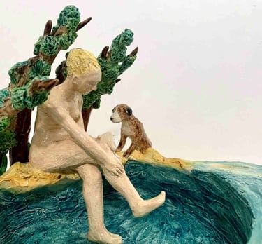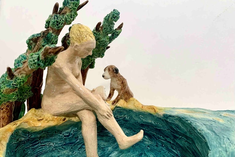Diane au bain (détail), 2024 . Céramique émaillée, 20 x 41 x 28 cm
