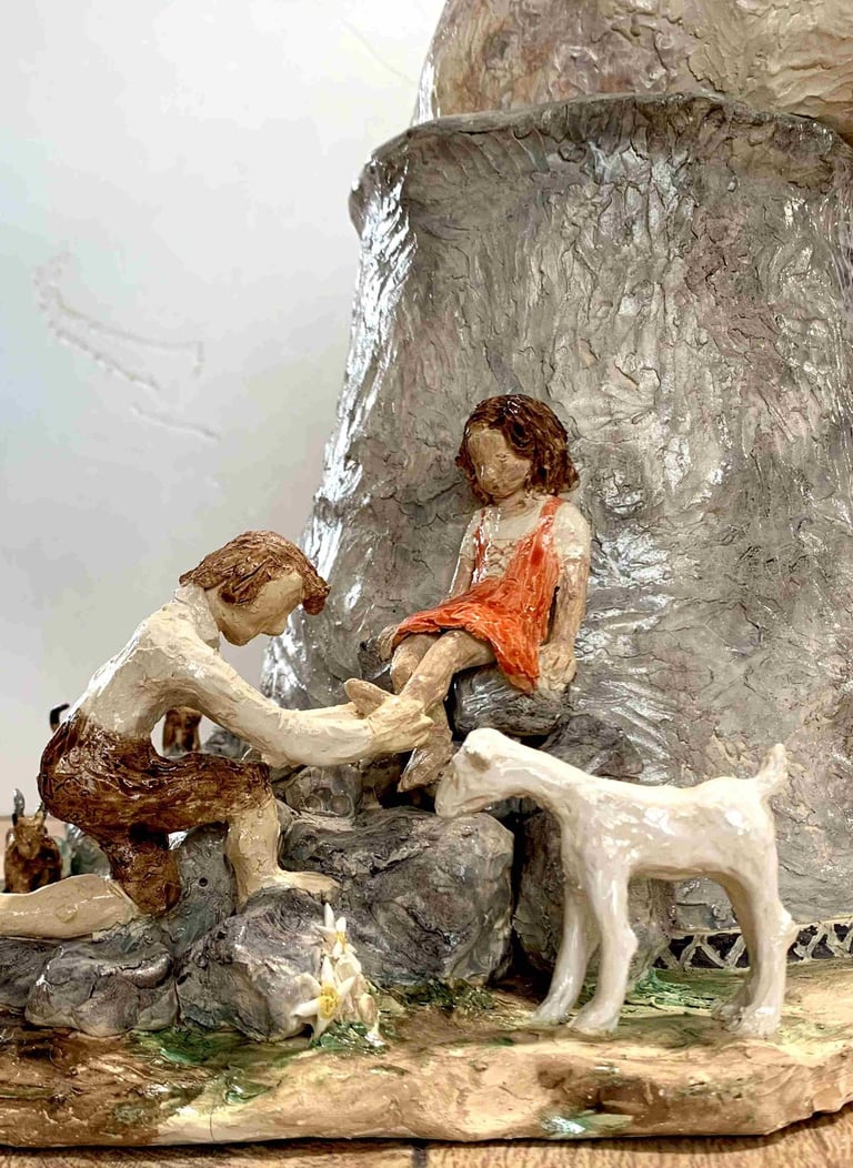 La centrale nucléaire ou l'épine dans le pied (détail), 2018. Céramique émaillée, 43 x 33 x 29 cm